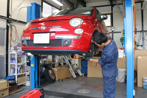 大阪府摂津市よりフィアット500のお客様、ブレーキチェックランプが付いたとご来店。