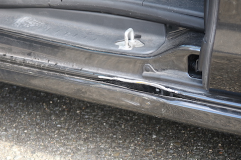 ドアを開けた内側部分のステップも、大きく凹んでいます。