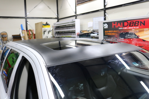 車のルーフのヘコミを直してからカーボンブラックラッピング!