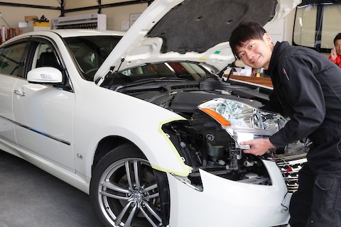 大阪府交野市よりニッサン フーガのお客様、ヘッドライトが異音がするとご来店。