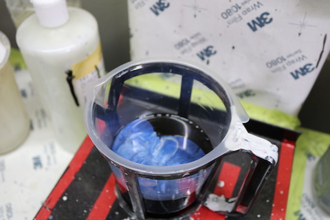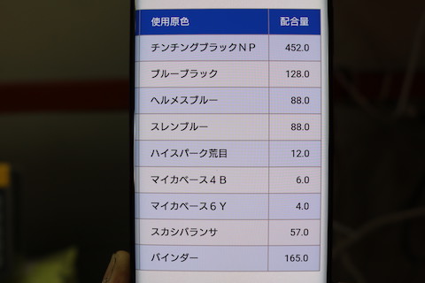 データベースより色を作成する調色割合表を元に、色を作ります。