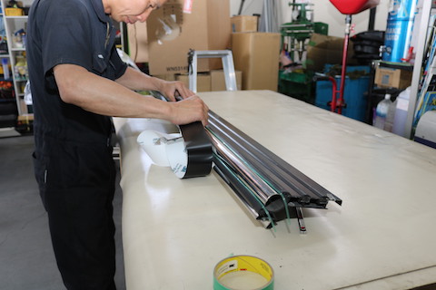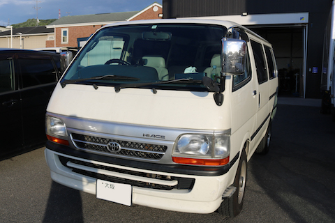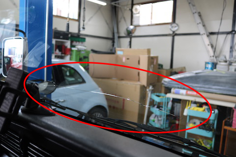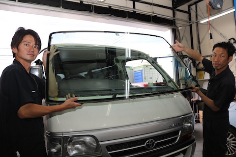 100系ハイエースのお客様、フロントガラスにヒビが伸びてしまい、交換となってしまいました。