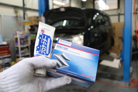 スズキ純正のフロントパッドとパッドグリースをご用意。
