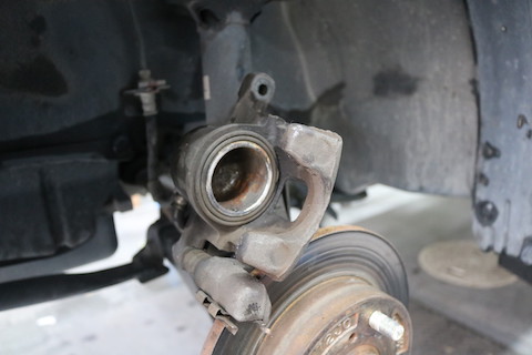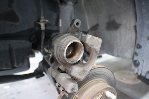 ブレーキを踏むとブレーキパッドが押されるシリンダー部分、