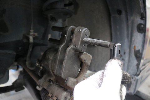 専用工具でシリンダーを押し戻し、