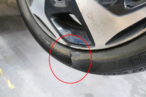 タイヤを縁石に当ててしまったそうで、