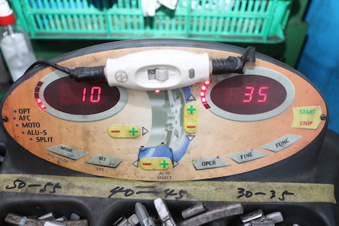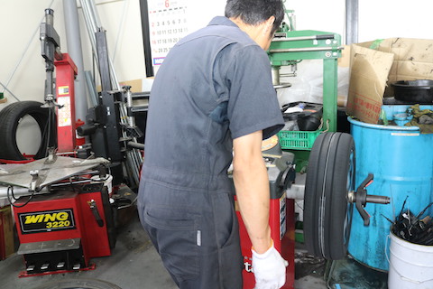 次にタイヤバランサーという専用工具で、タイヤとホイールのバランスをチェック。