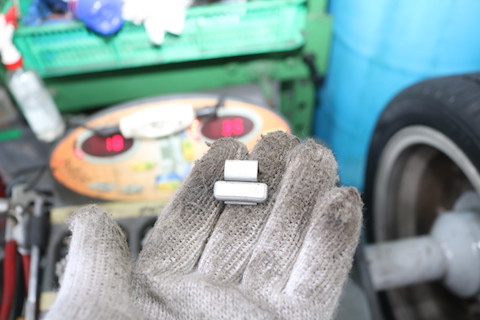 今回は、左のパッドはもう1mm近い状態!乗っていても気づかず、パッドがなくなれば、ブレーキが効かなくなるギリギリの状態!!!
