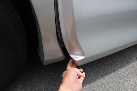ドア下部分についているガーニッシュが外れて浮いています。