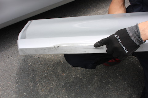 この部分だけの色塗りと外れた部分の補修という方法もありますが、調べた結果、部品代は¥13,000だったので、今回は負担の少ない交換となりました。
