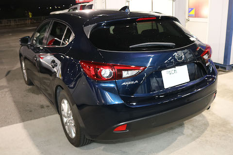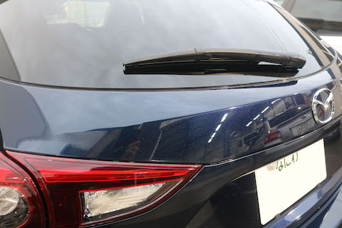 大阪府大阪市よりアクセラのお客様、リアゲートの傷とヘコミ修理でご来店。