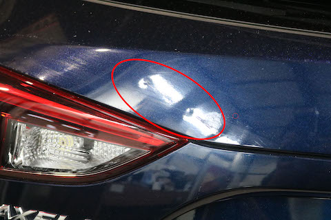 車のリアゲートの傷とヘコミを鈑金・塗装で綺麗に直します!