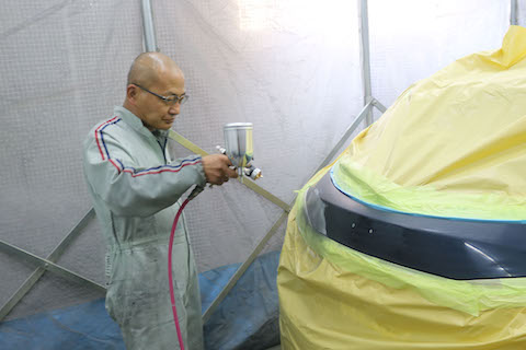 今のリアバンパーを再生させる鈑金・塗装で修理する事になりました。