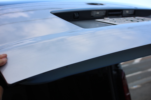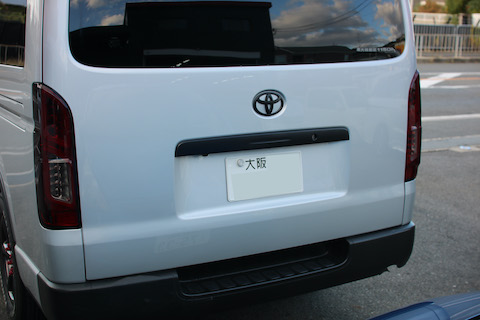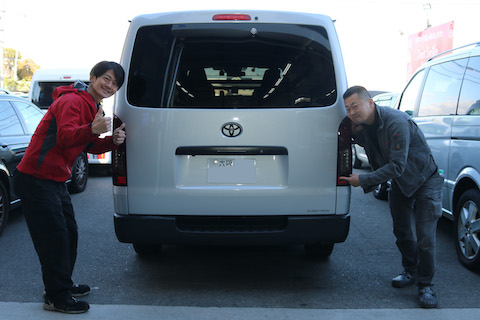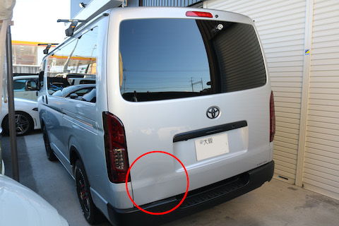 ハイエースのお客様、リアゲート部分にヘコミができてしまったとご来店。
