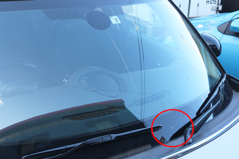 走行中に飛んできた小石などが当たって小さなヒビ割れが出来た所から、