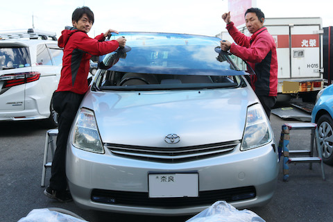 通常、フロントガラス交換は、ガラス専門業者様が、