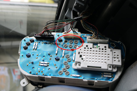 メーターを外し、裏目から球を交換します。基盤なので静電気に気をつけての作業。