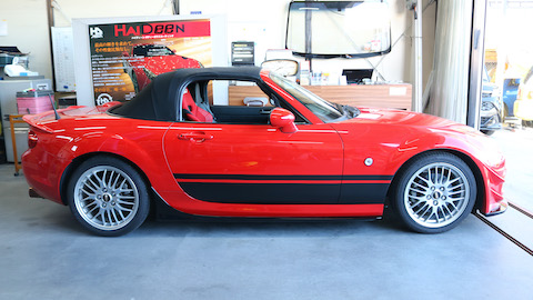 ロードスターのデザインが、フロントタイヤの下側がボディより出ているので、