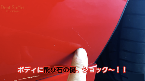 後ろの方まで飛んで傷がついています。洗車の時に目に入って心を悩ませます。