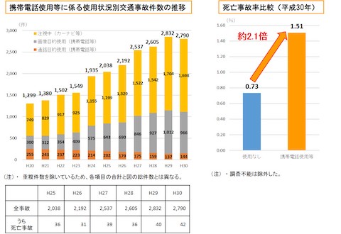 ながら運転での交通事故は10年で2倍以上もふえています。