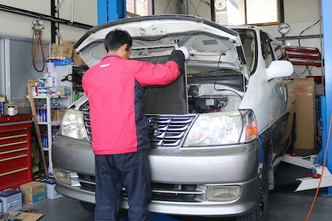 グランドハイエースのお客様、水温計が上がったと連絡があり緊急入庫。