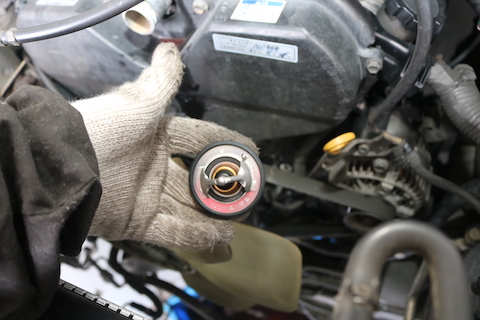 水温計が上昇したので、熱で自動開閉する弁のサーモスタッドも同時交換。