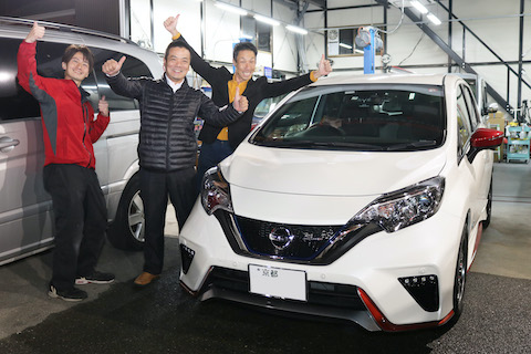 日産ノートのお客様、グリル部分を色変えしたいとご来店。