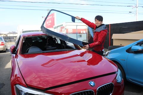 タイヤがパンクしてるのと、フロントガラスが割れているとご来店。