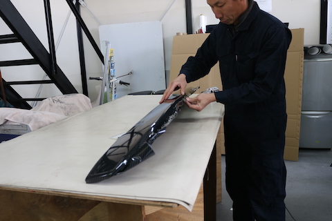 下の部分から、事前に型取りしたフィルムを貼り付けします。