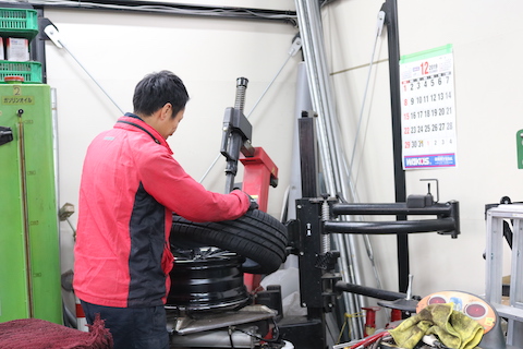 タイヤの溝もあまり無かったので、お客様の持ち込みタイヤを取付。