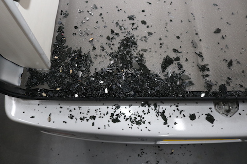 今回は、飛び石被害で割れていました。