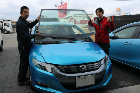 インサイトのお客様、フロントガラスに大きなひび割れが出来てしまったので、