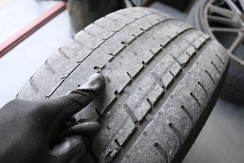 前タイヤはスリップサインがちょうど出たところ、