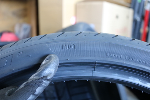 マセラティ認証タイヤ MGTの刻印が入っています。