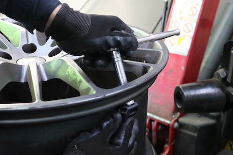 タイヤの取り外しで壊さない様に、バルブから先に取り外します。