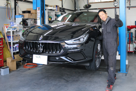 大阪市よりマセラティのお客様、タイヤ交換でご来店。