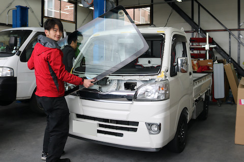 安さの理由は、純正フロントガラスに比べて1/3の価格で提供できる社外品ガラス。