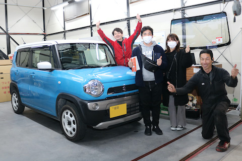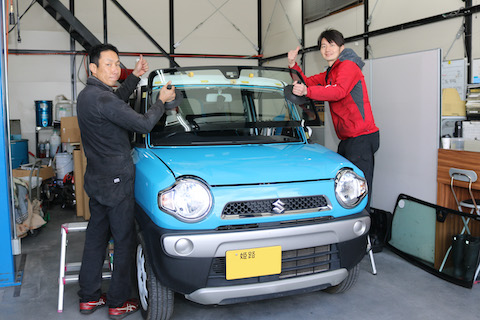 兵庫県加古川市より100km離れた場所から、ハスラーのフロントガラス交換でご来店。