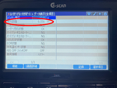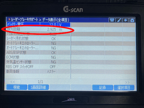 ハスラーの場合、実測とコンピューターが検知した距離を確認。