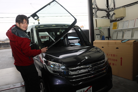 日産デイズルークスのお客様、フロントガラスが割れてしまったので、