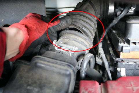 いちばん怪しい箇所として、空気の取り込み部をチェックしていきます。