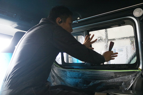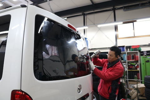 ハイエースに室内が見えないカーフィルムを施工、完璧なプライバシー保護!