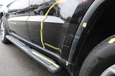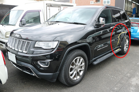 グランドチェロキーのリピーター様、左ドア部分をこすってしまい、