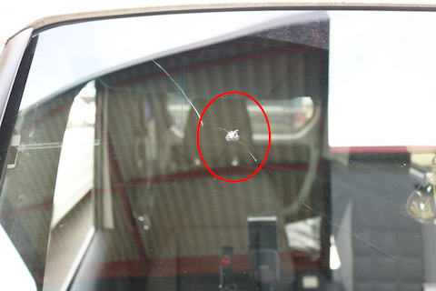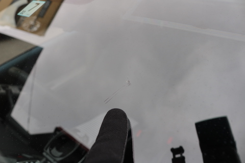 飛び石がフロントガラスに当たって割れてしまった箇所から、