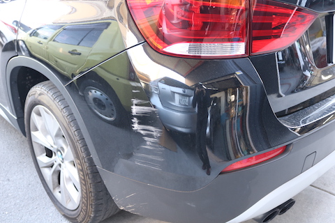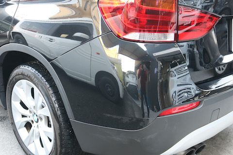 BMW X1のお客様、リアバンパーの左側をこすってしまったとご来店。