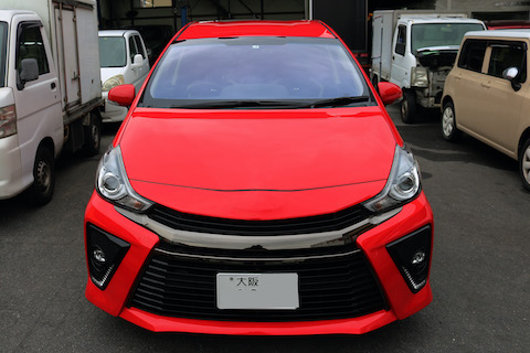 青だけじゃありません、赤色のフロントガラスもあります。