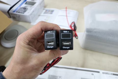 そして、下側にUSB差し込み口と温度計・電圧表示計を取付!