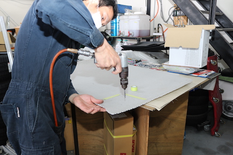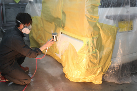 ヘコミを出し、傷を埋めて、下地処理した部分を塗装。