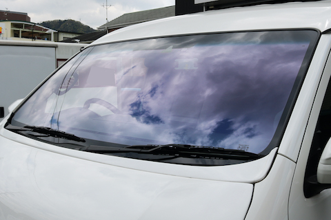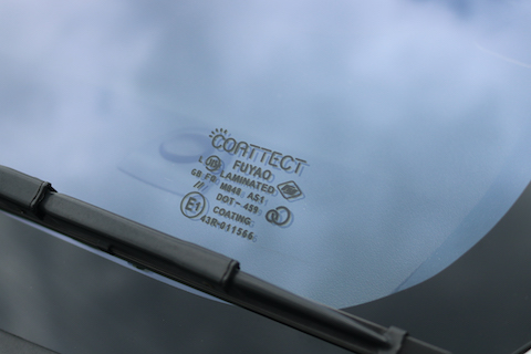 青色に輝くコートテクトというフロントガラスに交換しました!