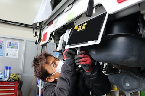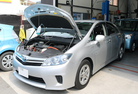 こちらは、ハイブリッドなので、強制的にアイドリング状態にする整備モードに切り替えて作業。